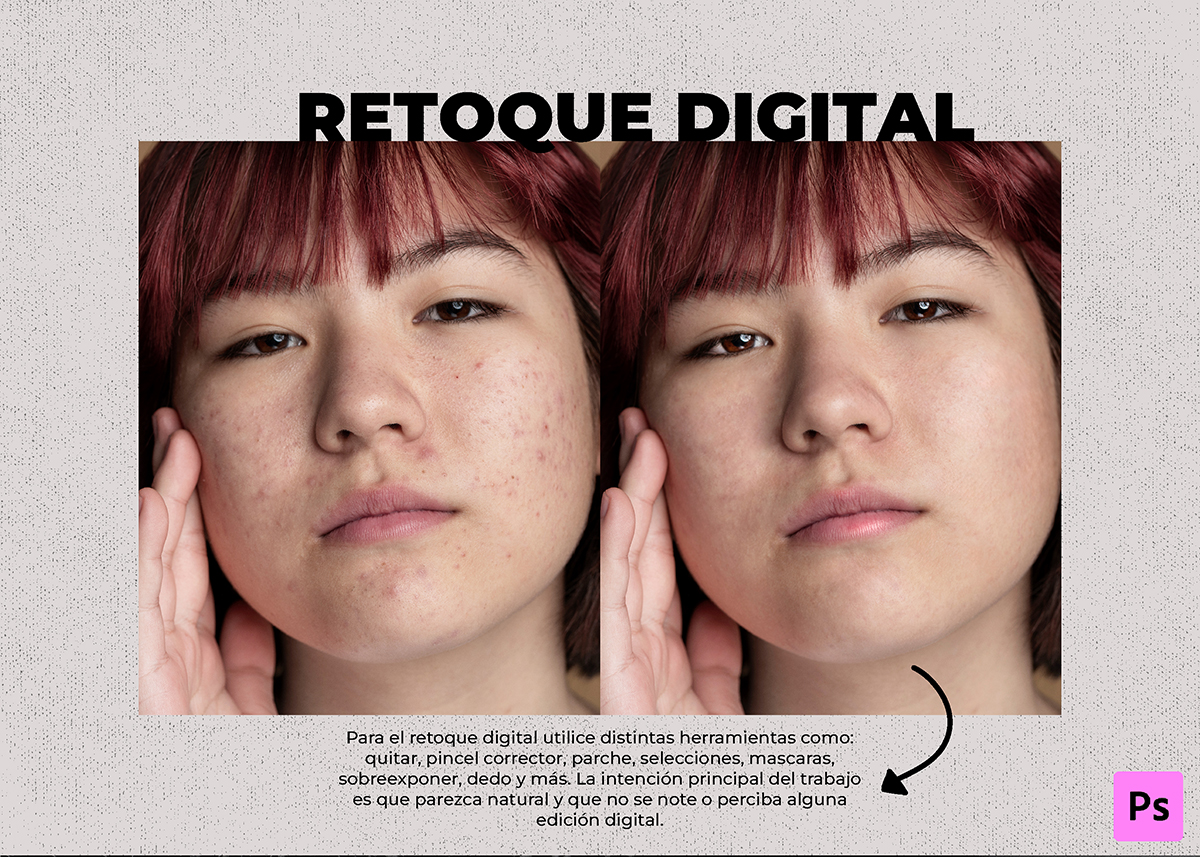 Este ejercicio consiste en aplicar diferentes herramientas y técnicas de retoque fotográfico para corregir y mejorar una fotografía.