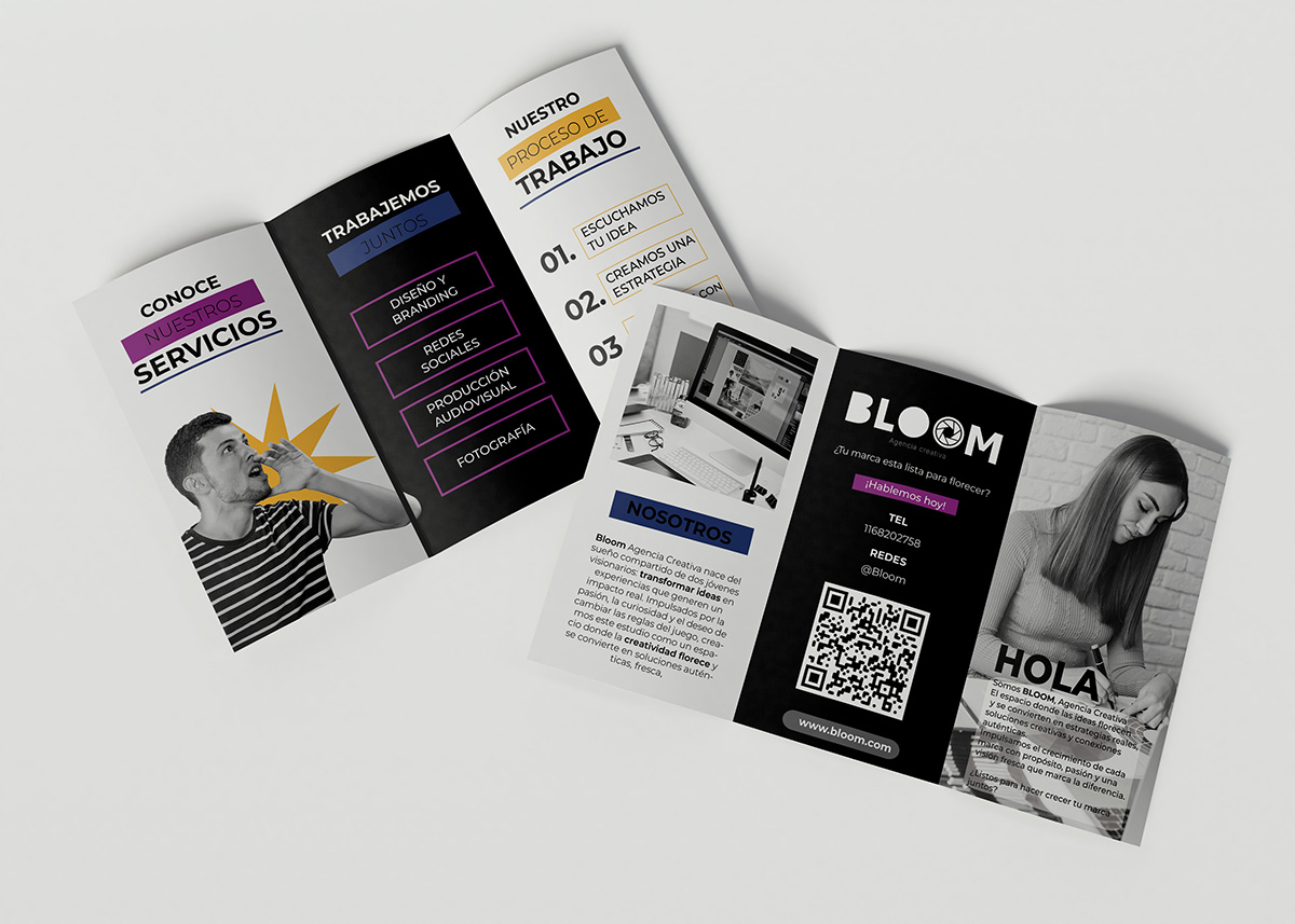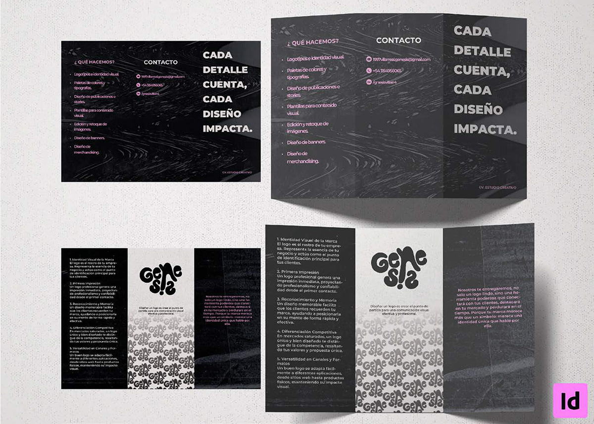 En este ejercicio se realiza un folleto aplicando conocimientos de diagramación editorial.