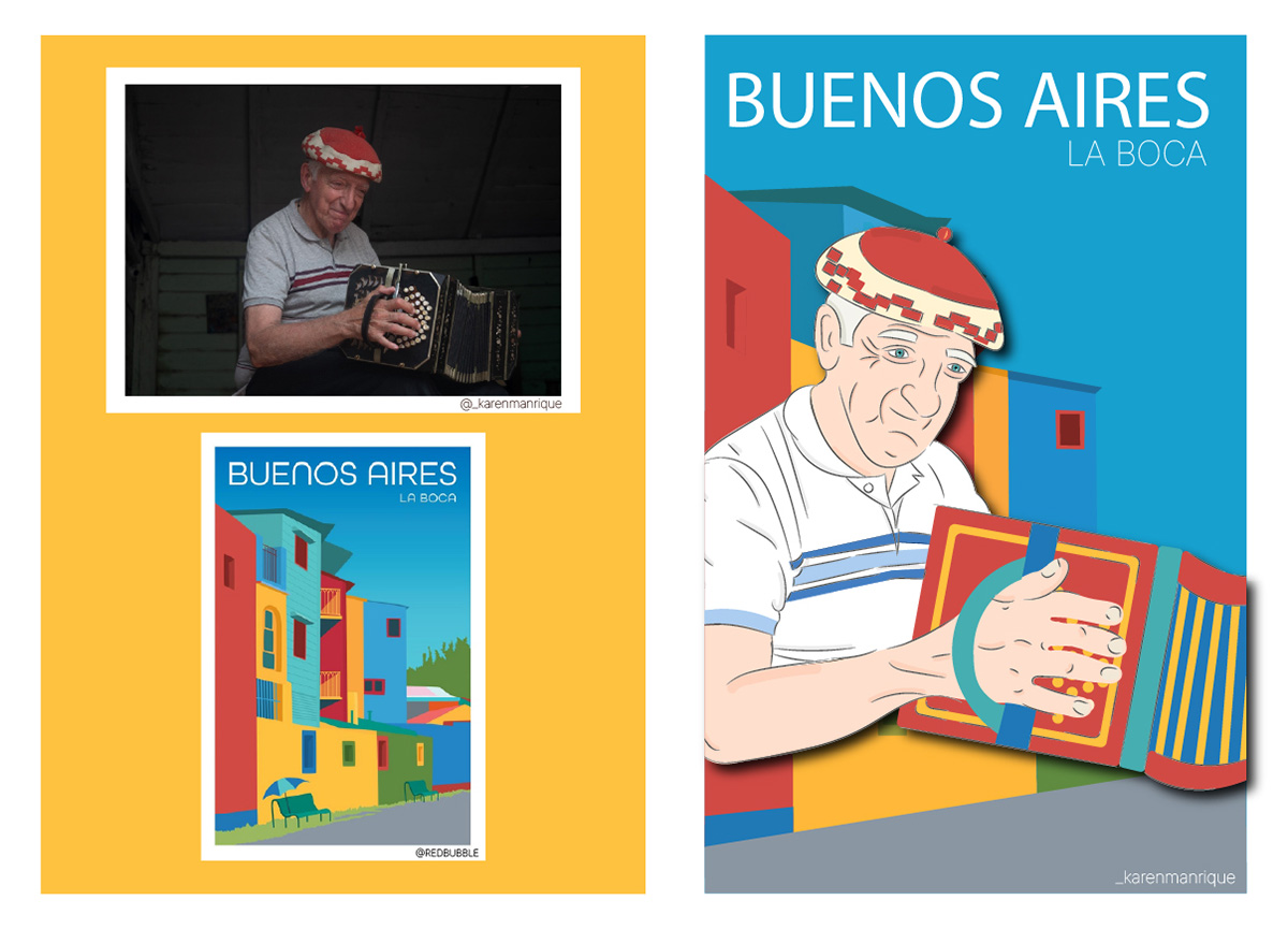 Se realiza una ilustración a partir de una imagen para luego transformar dicho dibujo en una pieza de comunicación (afiche) mediante el uso del texto para elaborar un mensaje.
