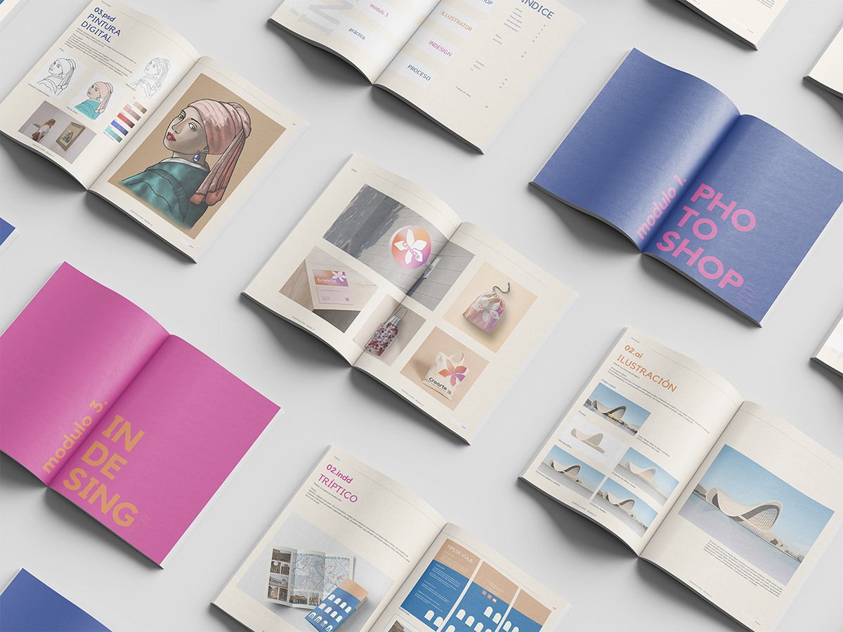 Este curso cuenta con tres módulos donde se aprenden las herramientas más utilizadas para trabajar en Diseño Gráfico además de Teoría Conceptual.