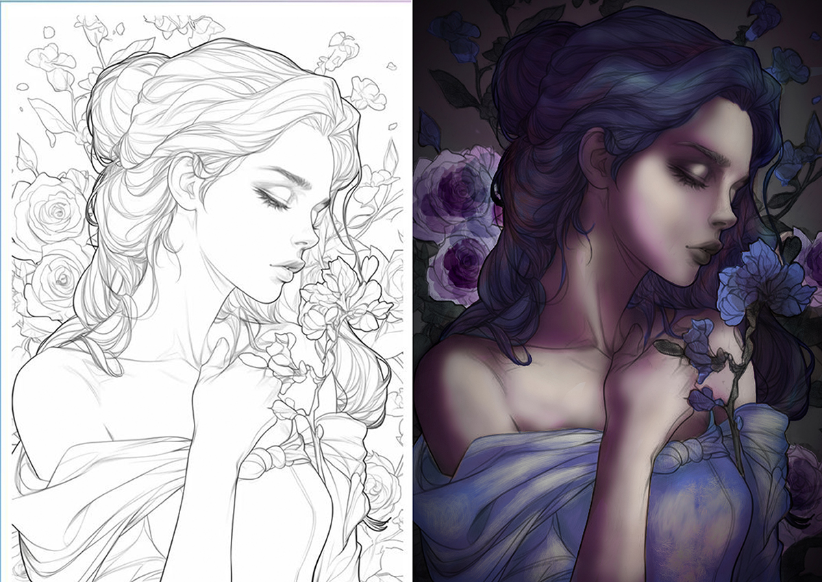 Se debe colorear una imagen en escala de grises o una ilustración line art utilizando tonalidades y variando las luces y sombras.