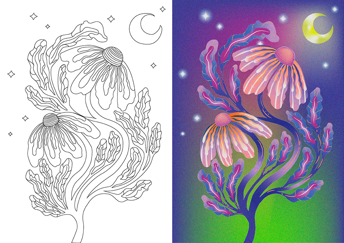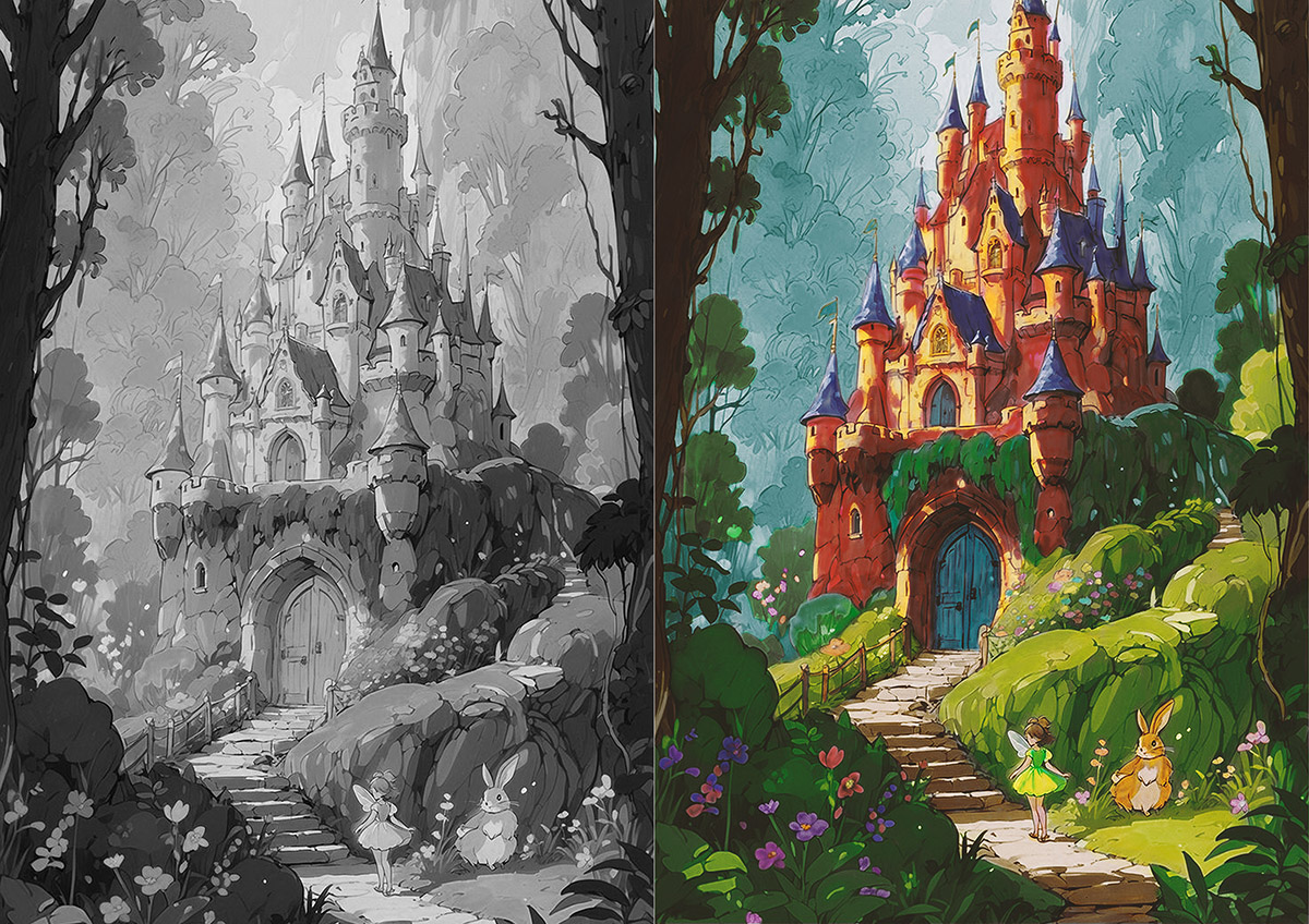 Se debe colorear una imagen en escala de grises o una ilustración line art utilizando tonalidades y variando las luces y sombras.