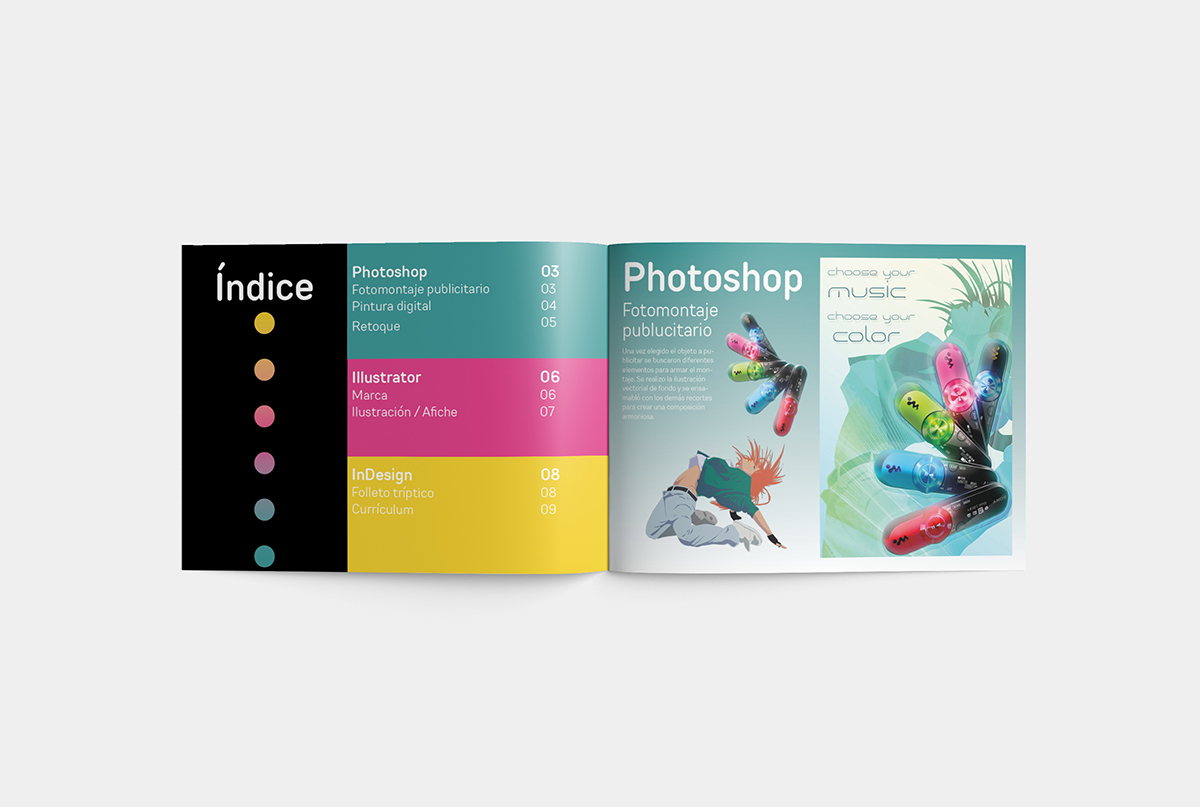 En este ejercicio se realiza un folleto aplicando conocimientos de diagramación editorial.