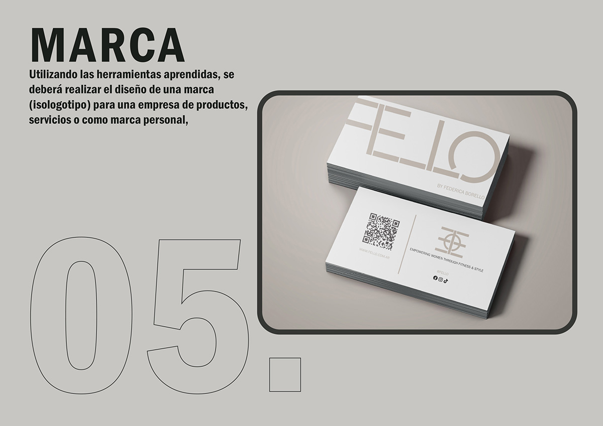 El ejercicio consiste en realizar una marca y luego implementarla en diferentes piezas de identidad variando formatos y soportes.