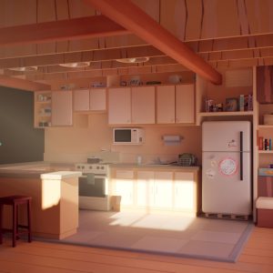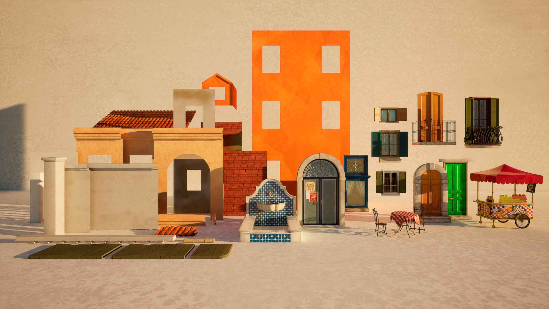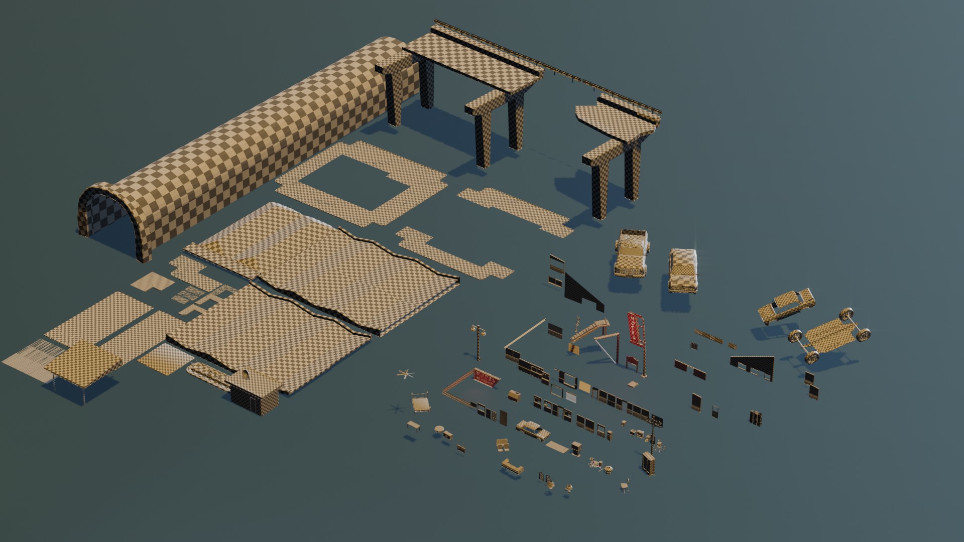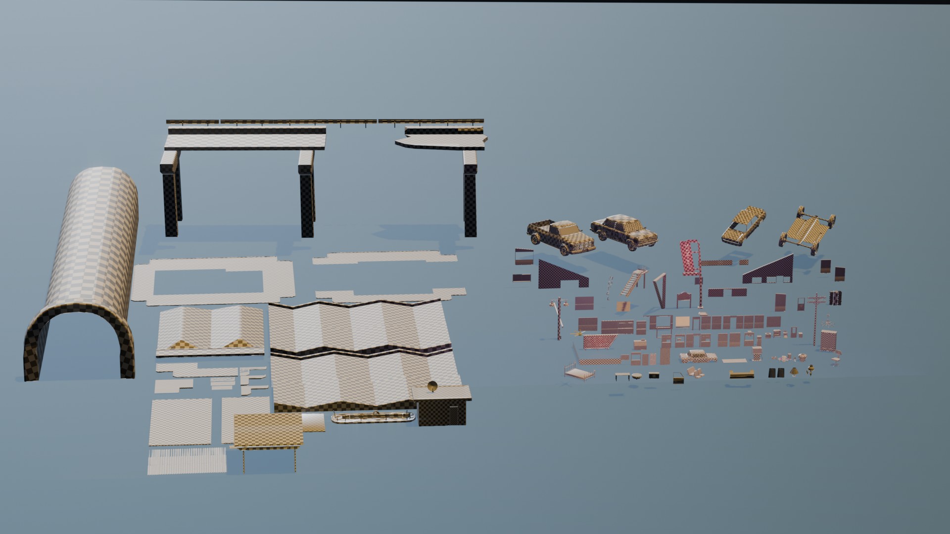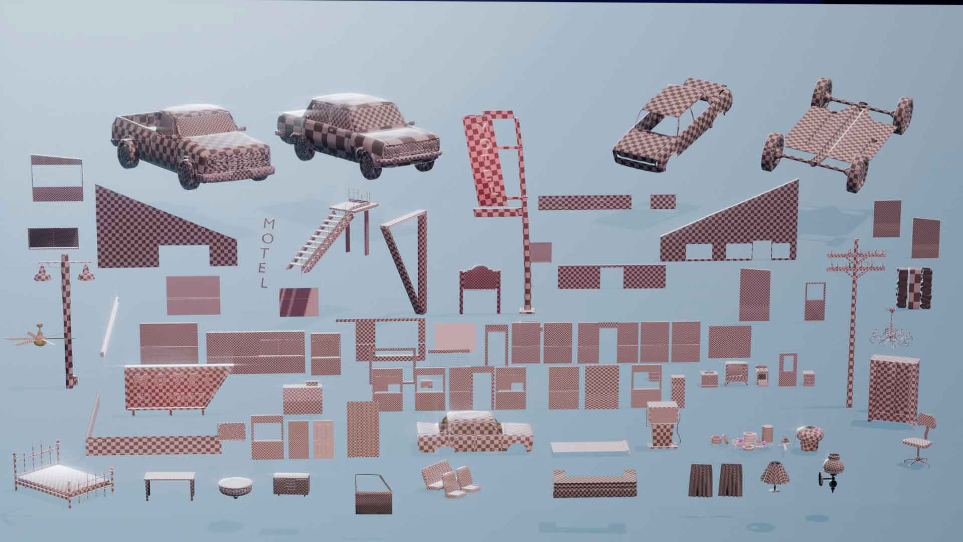 En el curso de Unreal: Escenarios para Videojuegos y Animación los alumnos comienzan modelando assets simples —cuadros, cortinas, puertas, etc.— para luego pasar a otros de mayor complejidad —vehículos, armas, radios, etc— y de ahí a escenarios continuos, utilizando Blender.
