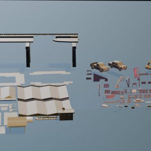 Algunas de las técnicas de las que nos ocuparemos son: Optimizado de bajo poligonado – Distintos tipos de decals para romper la uniformidad del escenario y aportarle más detalle y realismo – Baking de high poly a low poly (transferencia del detalle de los objetos a mallas low poly).